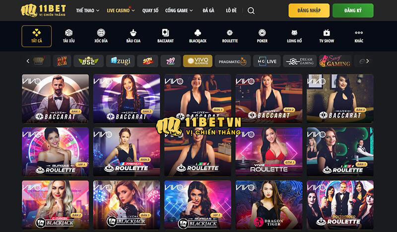 Sảnh casino trực tuyến tại 11BET luôn được xem là đích đến giải trí rất được yêu thích của giới trẻ Việt. Tại đây, bạn sẽ có hàng loạt các sảnh cược casino hot nhất trên thị trường để tham gia chơi. Đồng thời, kho game còn được đầu tư và cập nhật thường xuyên. Luôn có những trò chơi đánh bài mới, quen thuộc với người Việt.