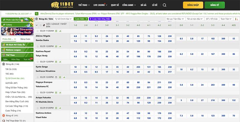 Kèo cược tỷ số nhiều thể loại tại nhà cái 11bet