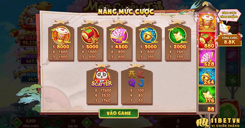 Hiện tại, sảnh nổ hũ 11BET đã chính thức cập nhật gần trăm phiên bản game quay hũ đổi thưởng. Hầu như toàn là những thể loại game hũ đang rất được yêu thích tại thị trường Việt Nam. Điển hình như Đón xuân, Phúc lộc thọ, Ông đồ, Chợ chết, Tây du thần khí, Mèo chiêu tài, Xin xăm, Lân hái lộc, Tuyệt đỉnh Kungfu,…